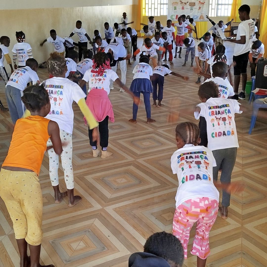 Desde sua fundação em 2009, o Projeto Criança Cidadã tem como objetivo firmar crianças em valores importantes como família, caráter pessoal, responsabilidade individual e convivência coletiva. Em Huambo, onde mais de 1500 crianças e adolescentes são atendidos diariamente, as atividades são cuidadosamente planejadas para promover a socialização e a harmonia. As aulas de dança, em particular, oferecem um espaço vibrante para a expressão cultural e o desenvolvimento de habilidades essenciais, alinhando-se perfeitamente à missão da instituição de buscar, através das habilidades individuais e coletivas, a plena harmonia e socialização entre os alunos.